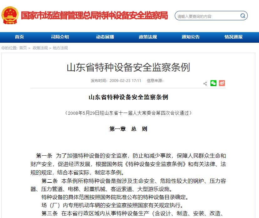 《山東省特種設(shè)備安全監(jiān)察條例》2008年5月29日經(jīng)山東省十一屆人大常委會(huì)第四次會(huì)議通過