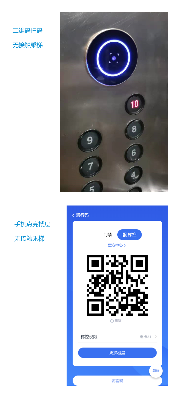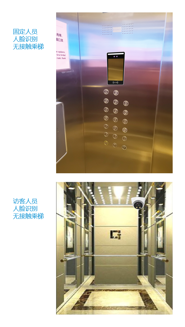 人臉無接觸乘梯:只需要人臉登記個人信息、刷臉即可實現(xiàn)無接觸乘梯通行,單個樓層刷臉自動點(diǎn)亮按鍵,多個樓層刷臉后手動按鍵,或者增加語音模塊,多個樓層權(quán)限刷臉后,直接語音乘梯,說無權(quán)限的樓層不會點(diǎn)亮按鍵,有權(quán)限的才能語音乘梯,公共樓層可直接語音乘梯。