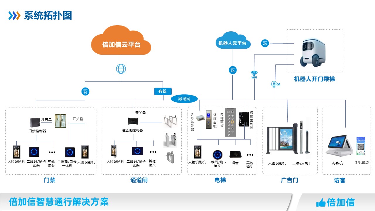 倍加信一碼通、一臉通、一卡通、機(jī)器人 門禁、梯控通行解決方案