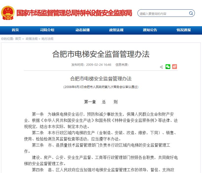 《合肥市電梯安全監(jiān)督管理辦法》2008年6月3日合肥市人民政府第九次常務(wù)會議審議通過